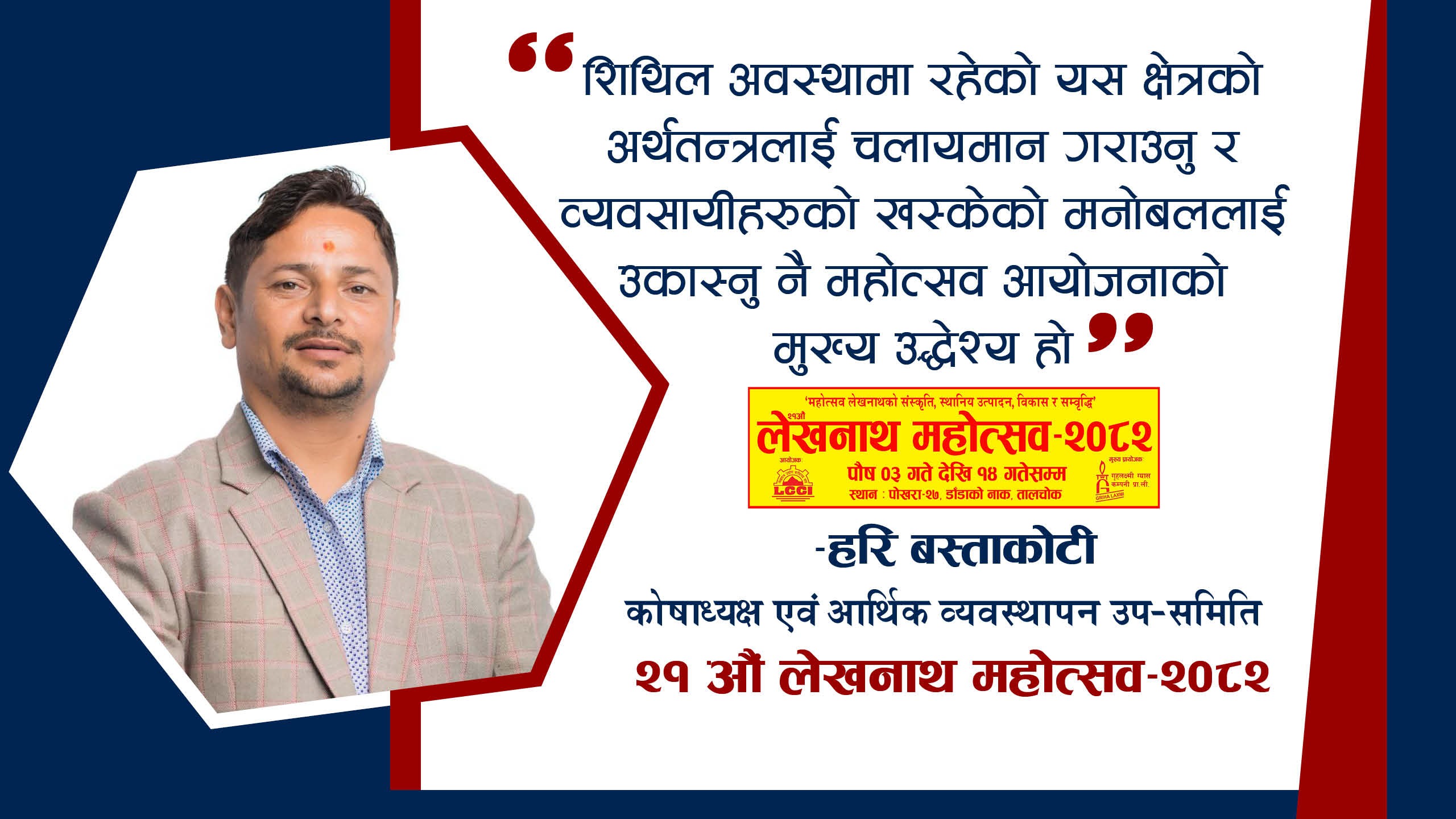 Read moreलेखनाथ, २६ मंसिर । लेखनाथ उद्योग वाणिज्य संघले आयोजना गर्न लागेको २१ औं लेखनाथ महोत्सवको तयारी तीव्र पारिएको छ ।...