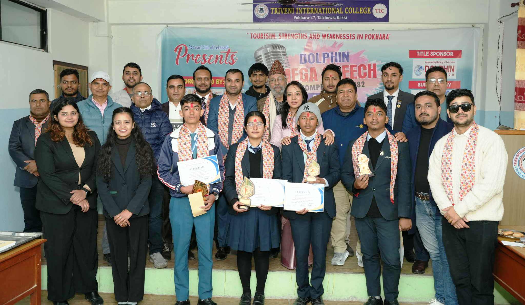 लेखनाथ, २६ मंसिर । रोट्रयाक्ट क्लव अफ लेखनाथले आयोजना गरेको 'डल्फिन मेगा स्पिच' सिजन–१ को उपाधी डायमण्ड मावि पोखरा–२७, तालचोककी...